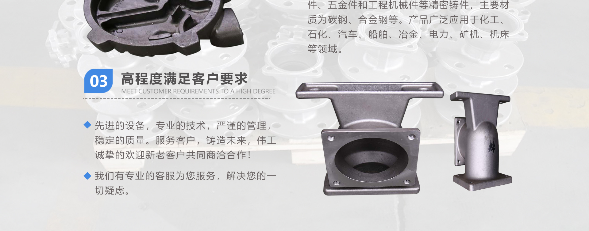 安徽偉工機(jī)械科技有限公司,坐落于安徽蕪湖新蕪經(jīng)濟(jì)開(kāi)發(fā)區(qū),是一家専業(yè)從事鑄造產(chǎn)品設(shè)計(jì)、研發(fā)、生產(chǎn)、銷(xiāo)售于一體的企業(yè),公司為客戶的產(chǎn)品提供多樣的技術(shù)支持與設(shè)計(jì),公司主要鑄造技術(shù)有潮模砂鑄造、硅溶膠精鑄工藝。主要產(chǎn)品有:不銹鋼閥門(mén)配件、泵閥配件、汽車(chē)配件、工業(yè)管道配件、工程機(jī)械配件、汽車(chē)配件等。材質(zhì)為:低合金鋼、304、316、316L、鉻鉬鋼、哈氏合金、碳鋼、雙相鋼等。公司已先后通過(guò)ISO9001和TS16949等多種體系審核,以完備的管理手段和齊全的檢測(cè)設(shè)備滿足客戶需求,進(jìn)的設(shè)備,専業(yè)的技術(shù),嚴(yán)謹(jǐn)?shù)墓芾恚€(wěn)定的質(zhì)量。服務(wù)客戶,鑄造未來(lái),偉工誠(chéng)摯的歡迎新老客戶共同商洽合作